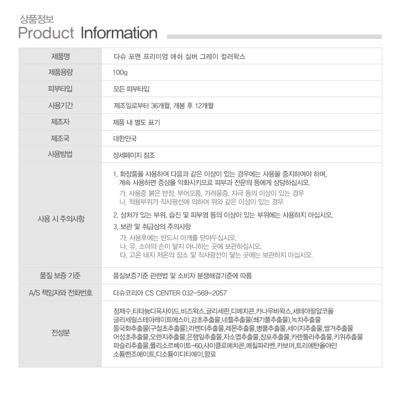 다슈 포 맨 프리미엄 애쉬 실버 그레이 컬러왁스 100ml