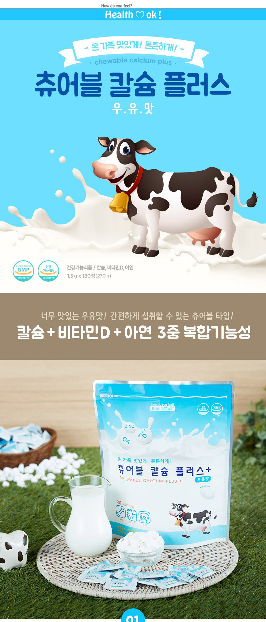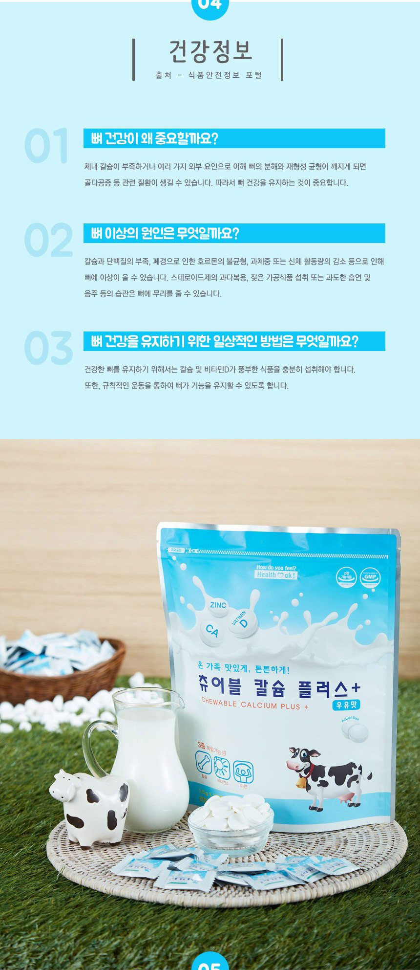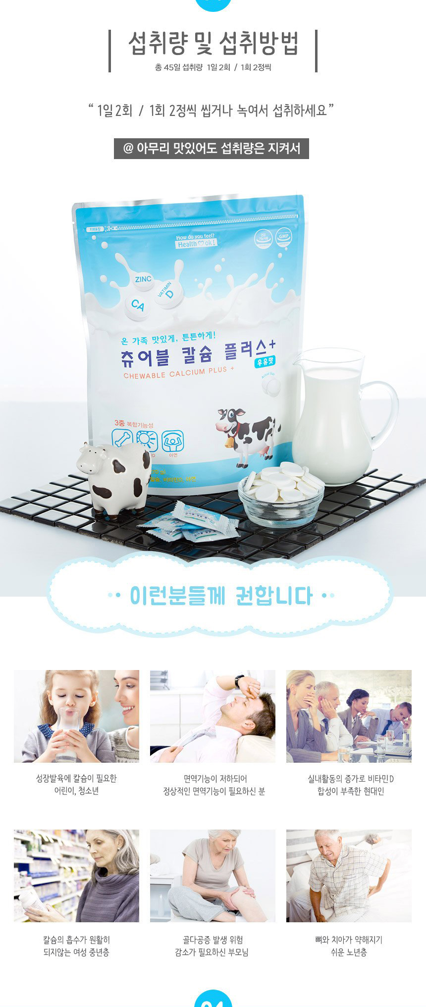 츄어블 칼슘 플러스 비타민D 아연 우유맛 180정x1봉