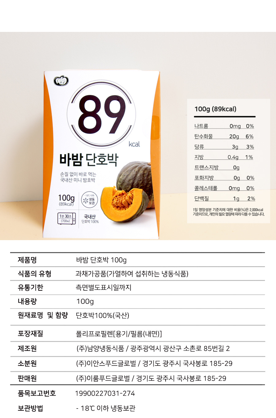 제주산 바밤 단호박 100g