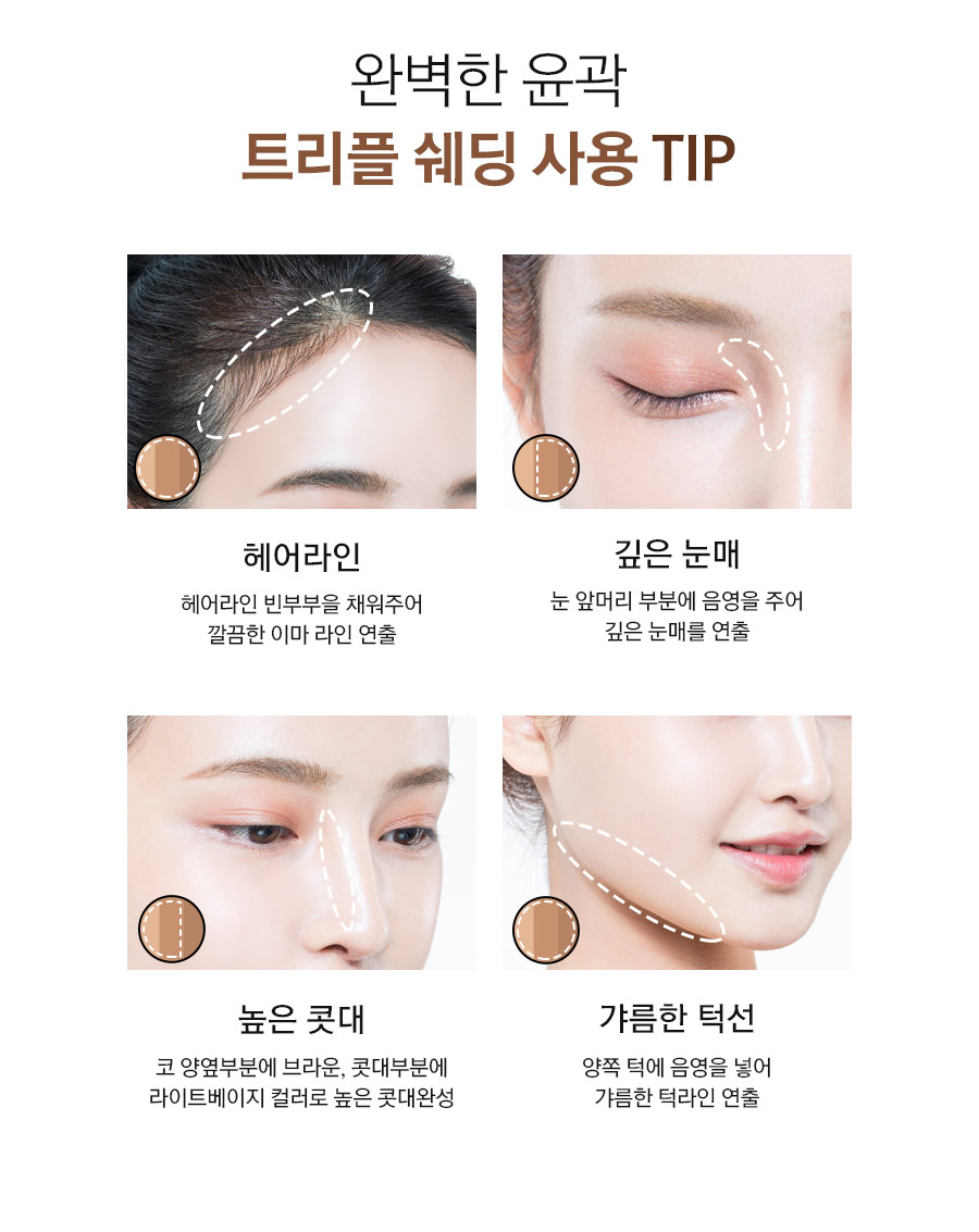 얼굴의 윤곽을 입체적으로 살려주는 쉐딩!!