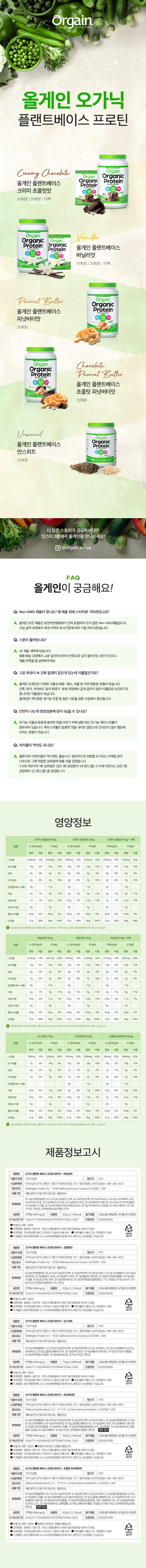 올게인 유기농 식물성 프로틴 단백질 보충제 바닐라맛 920g 3개