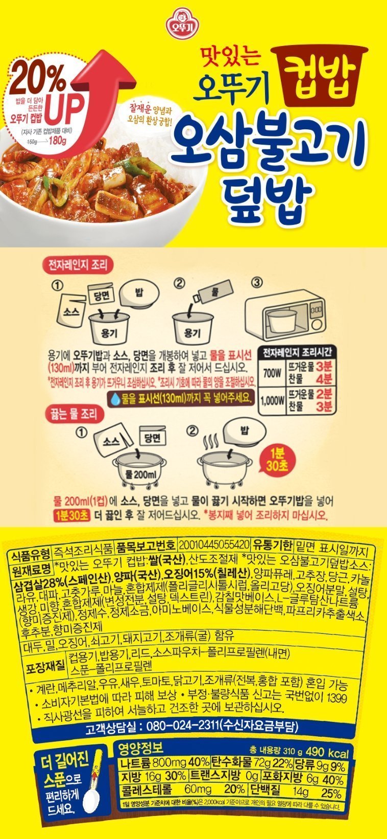 오뚜기 컵밥_오삼불고기덮밥(증량) 310G 6개