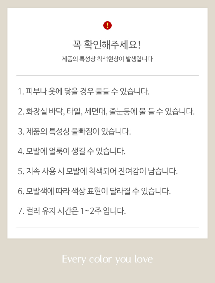 1. 화장품 사용 시 또는 사용 후 직사광선에 의하여 사용부위가 붉은 반점, 부어오름 또는 가려움 등의 이상증상이나 부작용이 있는 경우에는 전문의 등과 상담할 것.2. 상처가 있는 부위 등에는 사용을 자제할 것. 3. 보관 및 취급시 주의사항1)어린이의 손이 닿지 않는 곳에 보관할 것2)직사광선을 피해서 보관할 것.4. 눈에 들어갔을 때에는 즉시 씻어낼 것.