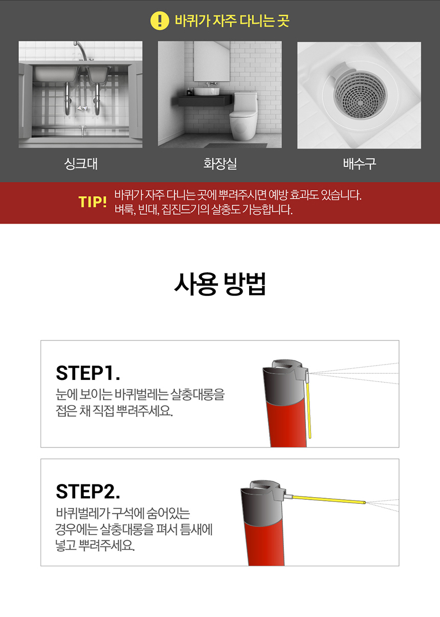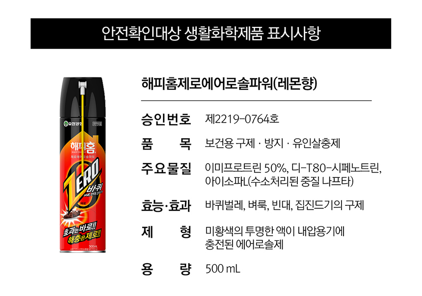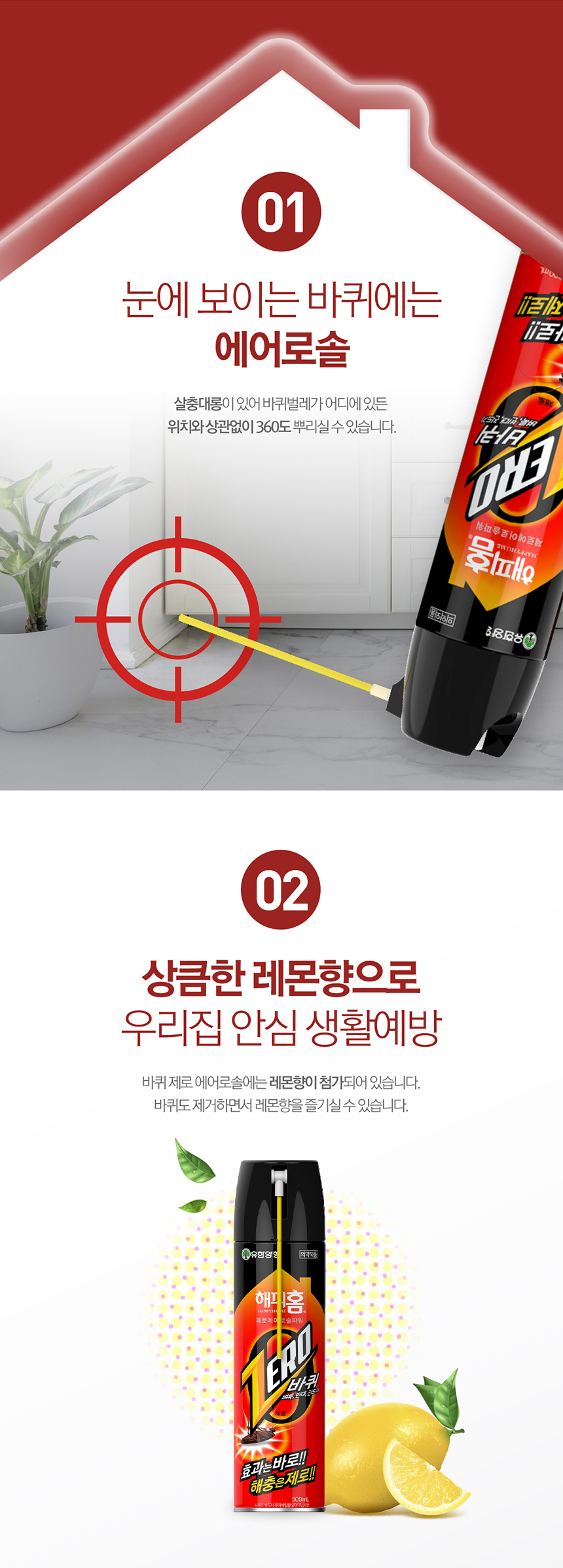 해피홈 바퀴벌레 살충제 제로바퀴 에어로솔 500ml 6개