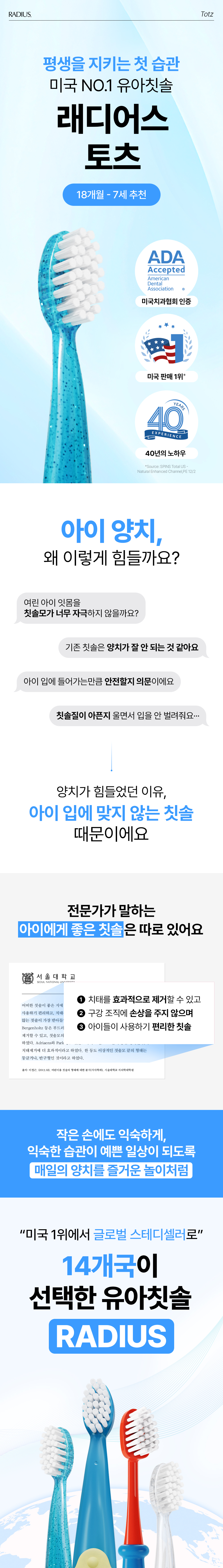 래디어스 토츠 6개 18개월-7세 유치원 유아 칫솔