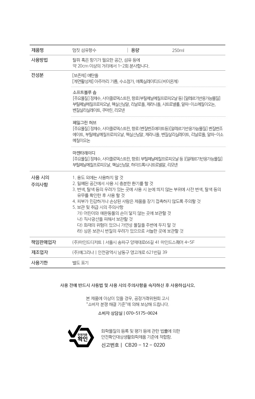 멈칫 대용량섬유향수 마젠타레이디250ml