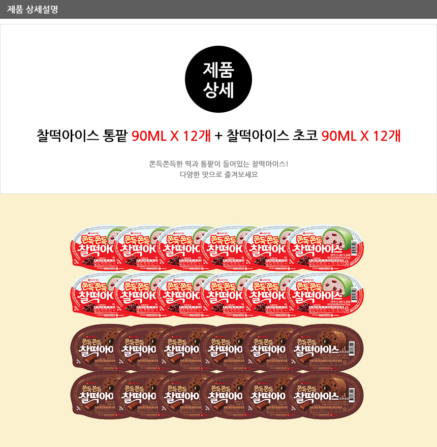 찰떡 아이스 통팥x12개+찰떡 아이스 초코x12개 총 24개