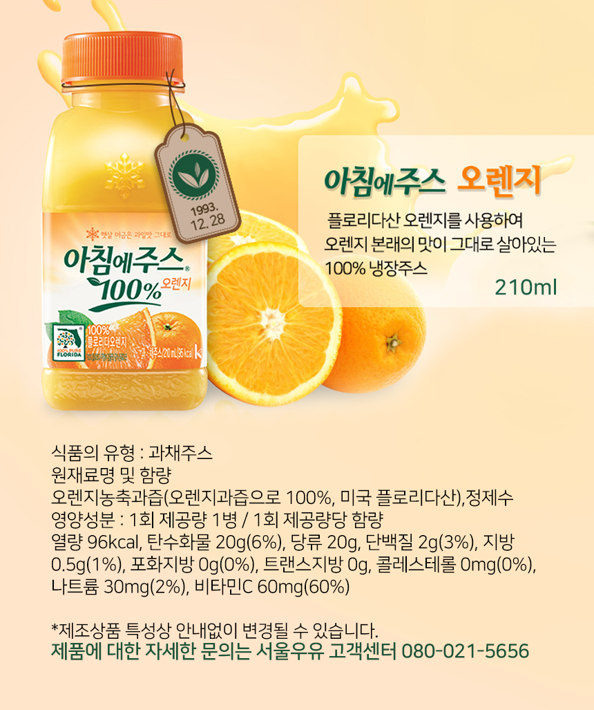 서울 아침에주스 오렌지 210ml X 24개