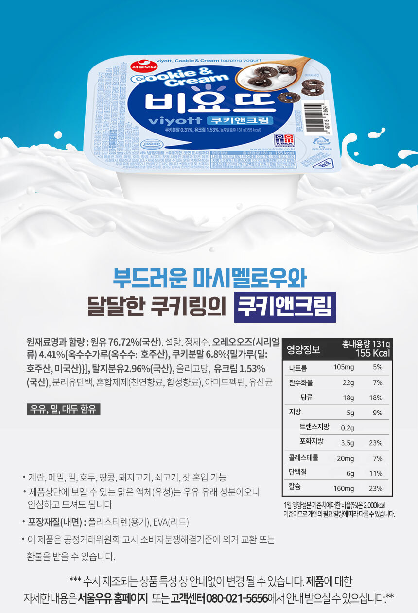 서울 비요뜨 쿠키앤크림 131g X 12개