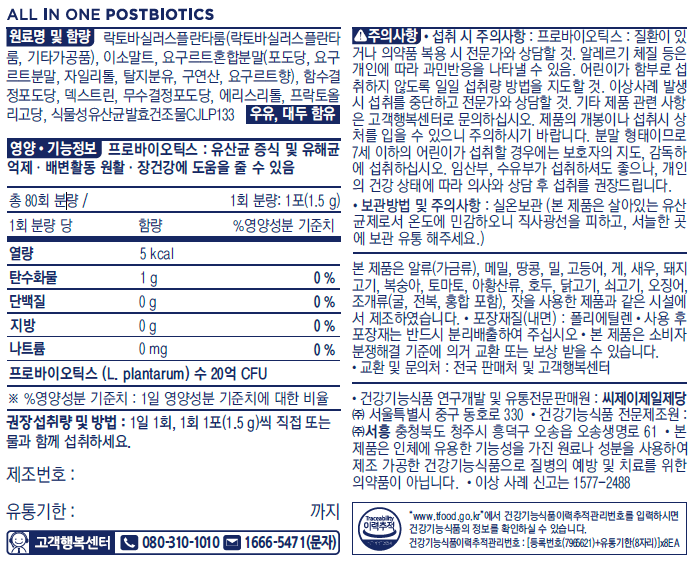 CJ웰케어 바이오 올인원 프로바이오틱스 유산균 선물세트(총 80포)