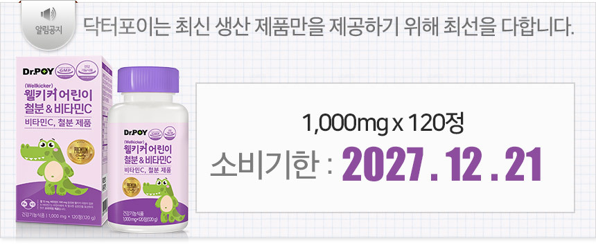 닥터포이 웰키커 어린이 철분 앤 비타민C 120정 2병 4개월분