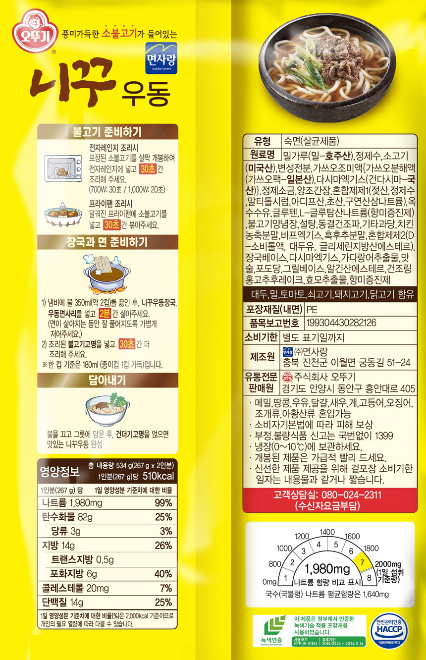 오뚜기 니꾸우동(2인) 534g 2봉