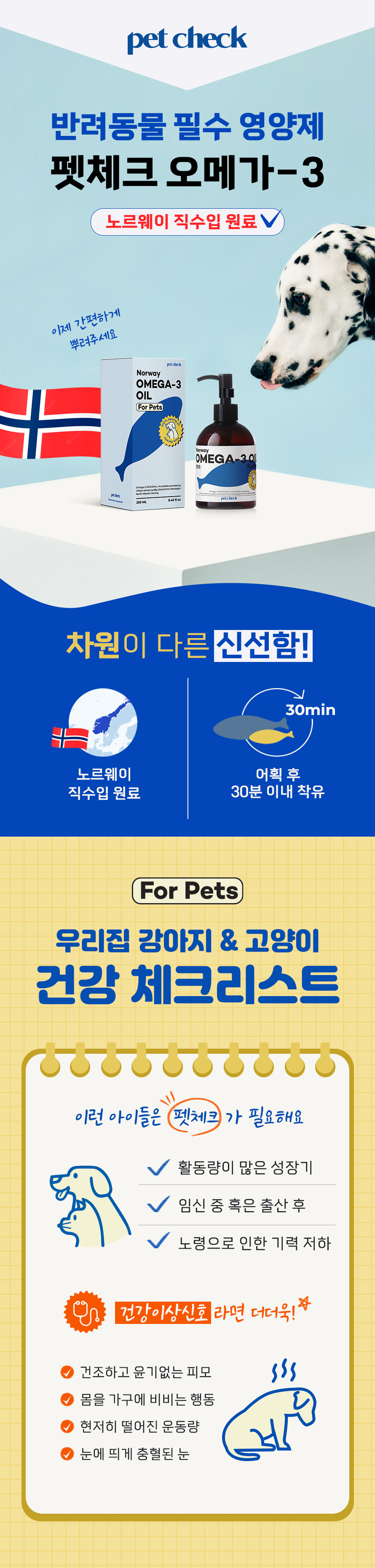 [공식수입] 펫체크 노르웨이 헤링 오메가3 (약 4개월분, 250ml x 1박스)