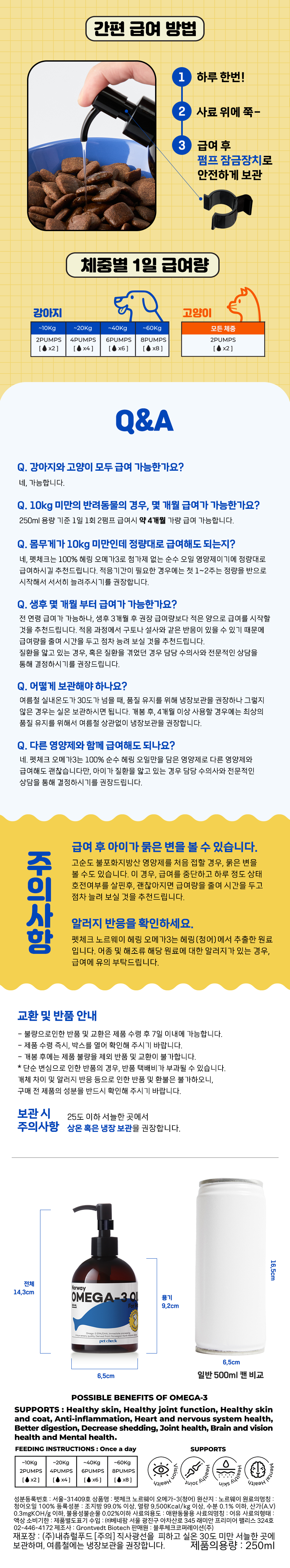 강아지/고양이 필수 영양제 Human Grade 냄새 없는 오메가3