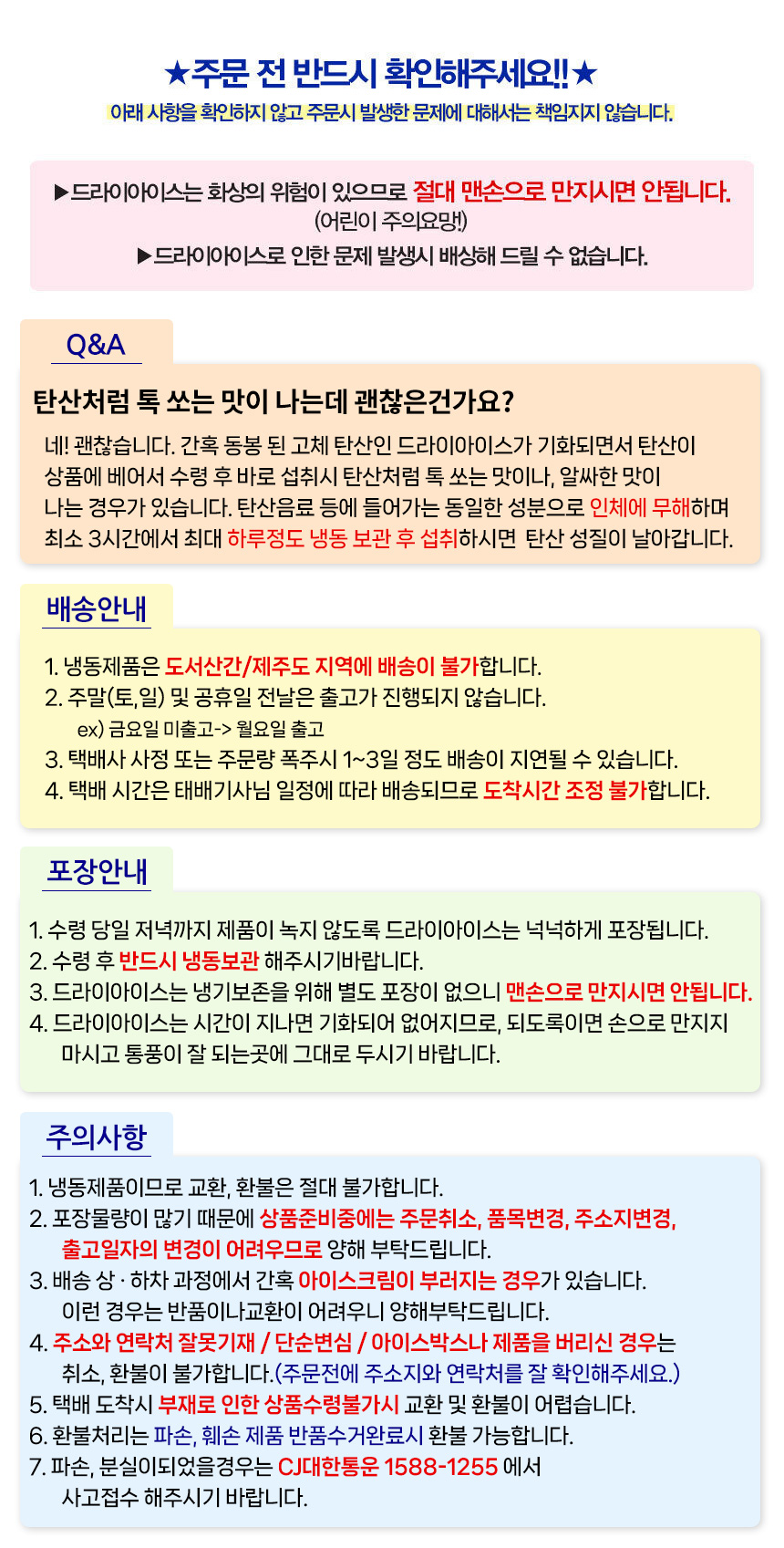 • 세트상품 부분반품/ 신선/ 냉장/ 냉동식품의 경우, 변심으로 인한 반품이 불가합니다.