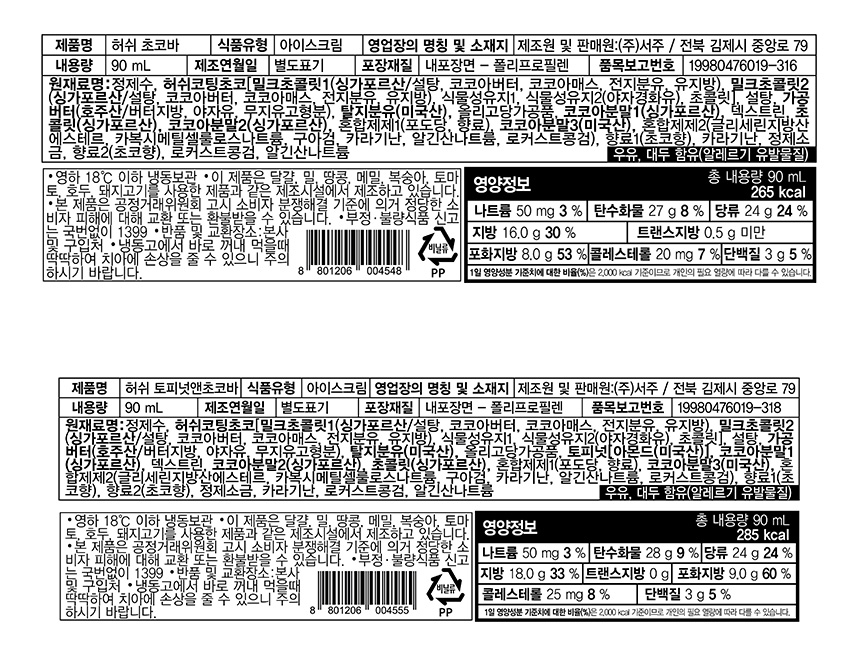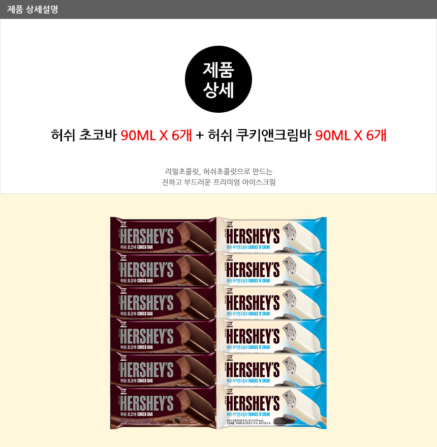 허쉬 아이스크림 초코바x6개 + 쿠키앤크림바x6개