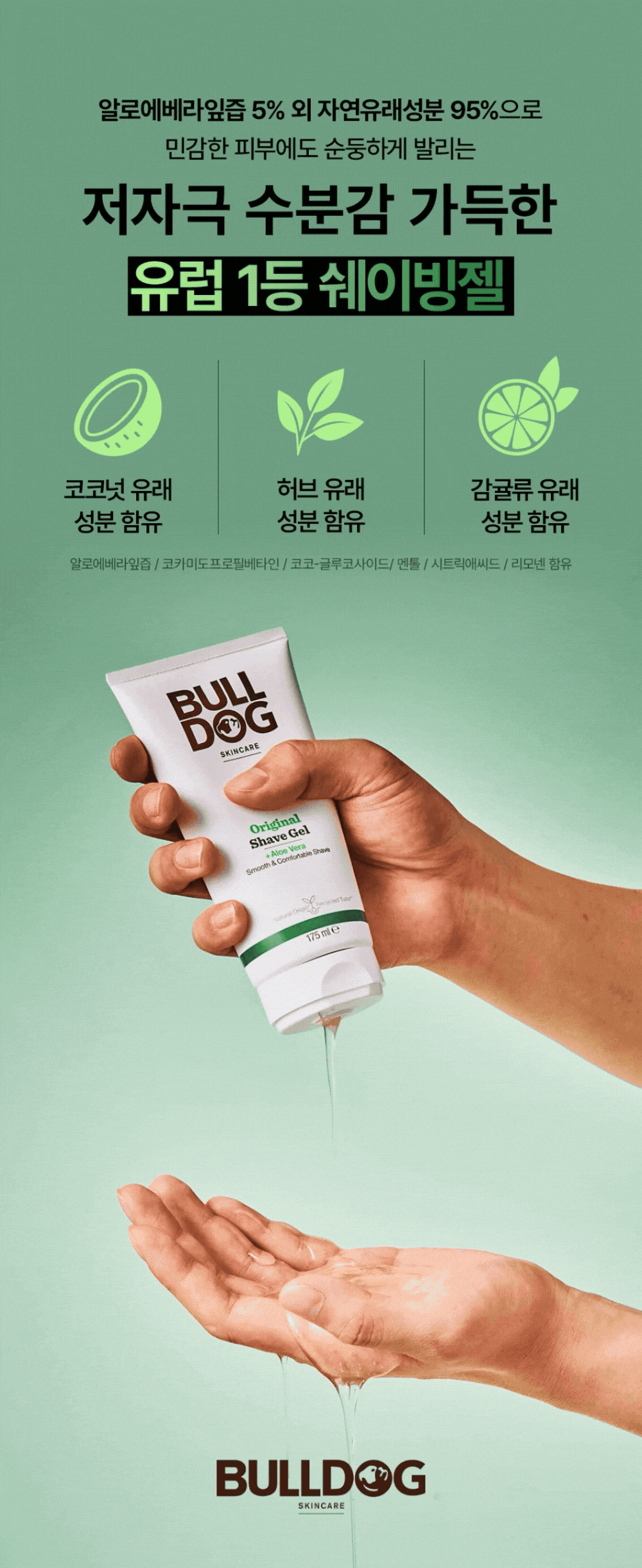 알로에베라가 함유되어 밀착면도와 수분진정을 도와주는 수분부족형 지성피부용 쉐이브젤