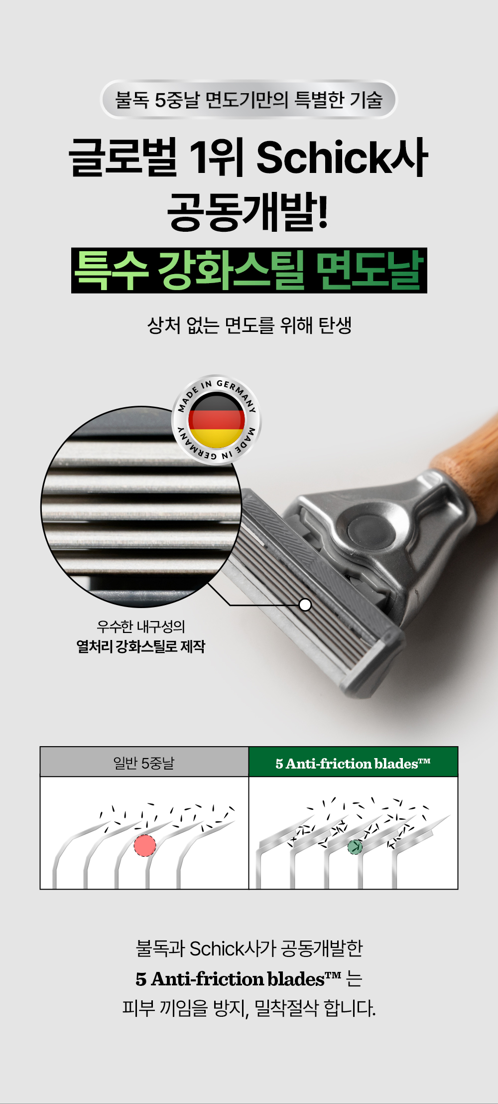 면도를 며칠만 안해도 사진처럼 수염이 자라는 사람입니다. 수염이 저렇게 자라다보니 면도하는 방법이나 면도기에 성능에 대해 수염이 별로 자라나지 않으시는 분들보다 많이 예민하고 이것저것 따질수 밖에 없는데요 그래서 질xx / 쉬x / 도xx 등등 메이커 제품과 가성비 라인인 이노xxx / 와이xx / 레이지xxx 등등 안써본 면도기가 없습니다 그러다 평소에 즐겨보던 유튜버 분이 홍보를 하시는 영상을 보고 알게돼서 제품을 구매했습니다 외관 : 깔끔하고 대나무 핸들을 사용해서 그런지 이쁩니다 그립감도 좋아요 성능: 면도기가 피부에 잘 밀착되고 밀착된 상태에서 부드럽게 밀려줍니다. 절삭력+민감도: 저같이 수염이 많이 나는 사람들은 목쪽 턱쪽 부분을 면도할때 날 핸들이 유연하지 않거나 절삭력이 좋지 않으면 까끌까끌 하게 수염이 남게 되는데 절삭력이 좋다는 브랜드들과 비교 했을시에도 뛰어난 절삭력을 보여주며 핸들이 부드럽게 움직여 줘서 굴곡된 곳들도 깔끔하게 밀어줍니다. 그리고 절살력이 좋으면 그만큼 피부에 데미지가 갈 수밖에 없는데 신기하게도 데미지가 거의 없는게 진짜 깔끔하고 기분 좋은 면도를 한 느낌이에요 정리:매우매우 좋은 면도기 입니다 많은 분들에게 추천하고 싶어요