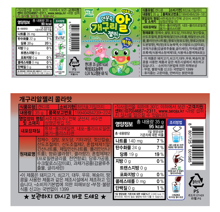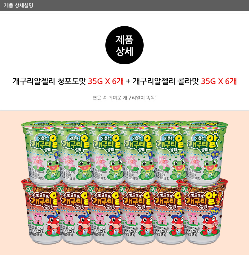 개구리알 젤리 청포도맛 35g x6개+콜라맛 35g x6개