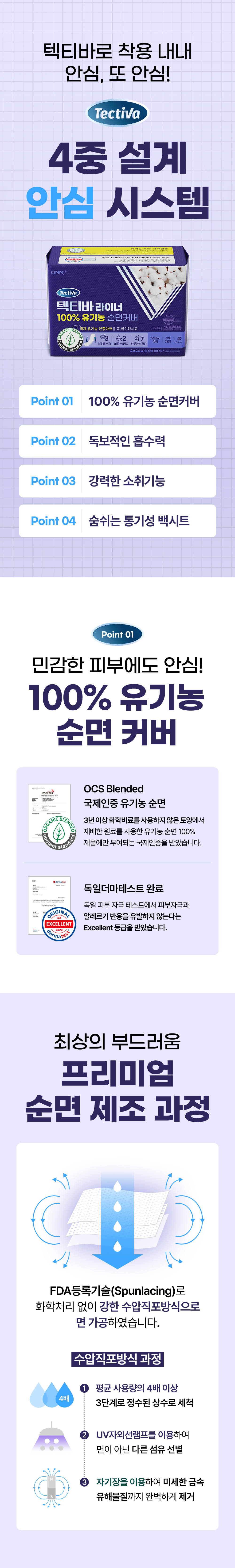 텍티바 100% 유기농 순면커버 롱라이너 30개입 1팩