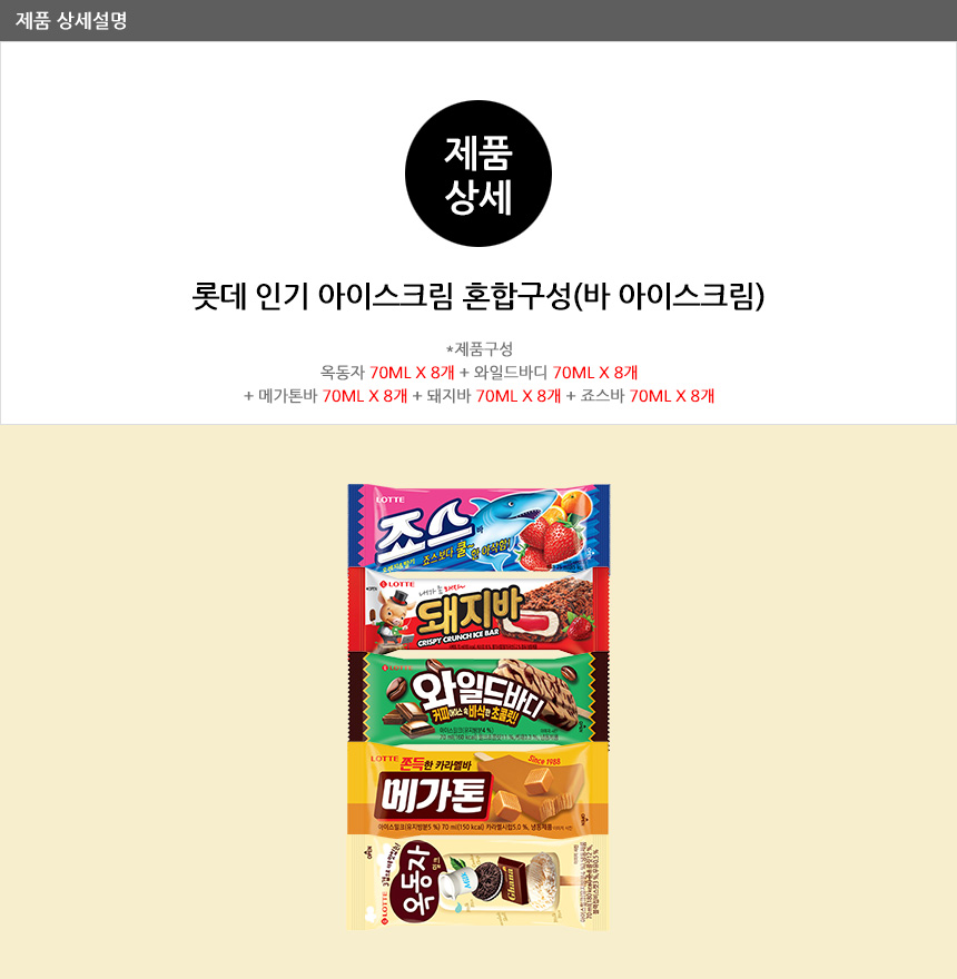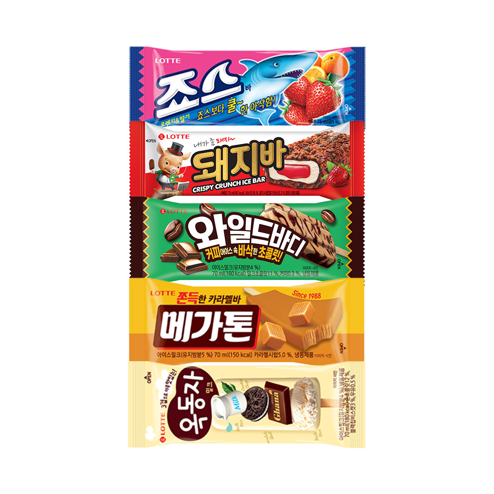바아이스크림 5종 40개 혼합구성(옥동자,와일드바디,메가톤바,돼지바,죠스바)