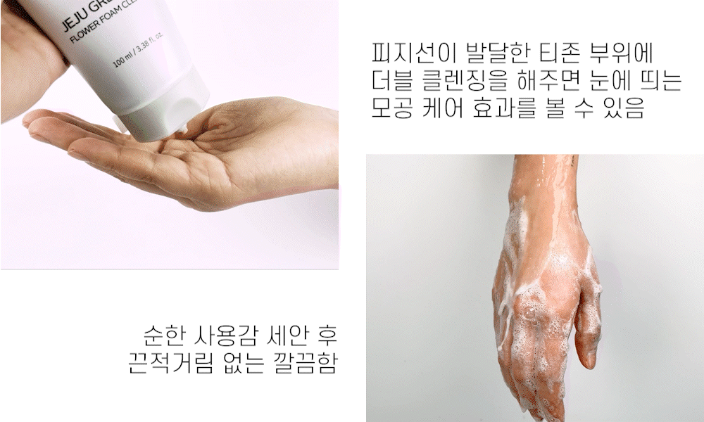 청정제주의 자연에서 얻은 녹차꽃 추출물과 화산송이가 먼지와 화장으로 지친 피부를 깨끗하고 촉촉하게 닦아내줍니다. 모든 피부용
