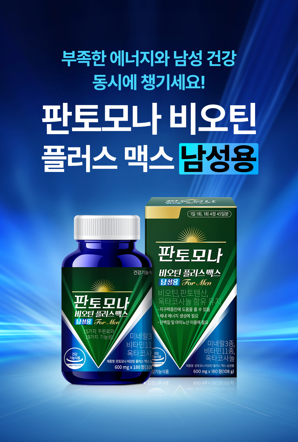 판토모나 비오틴 플러스 맥스 남성용 - 1박스 45일 분 (옥타코사놀) 180정, 3개