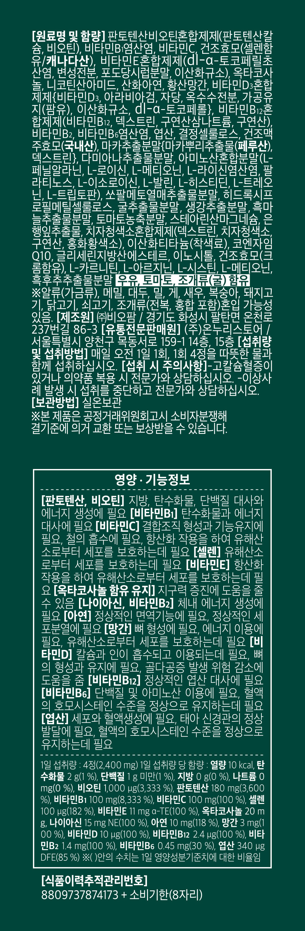소비기한 및 보관방법