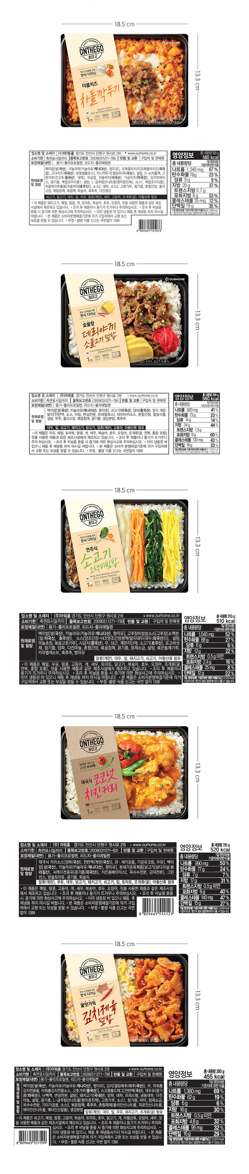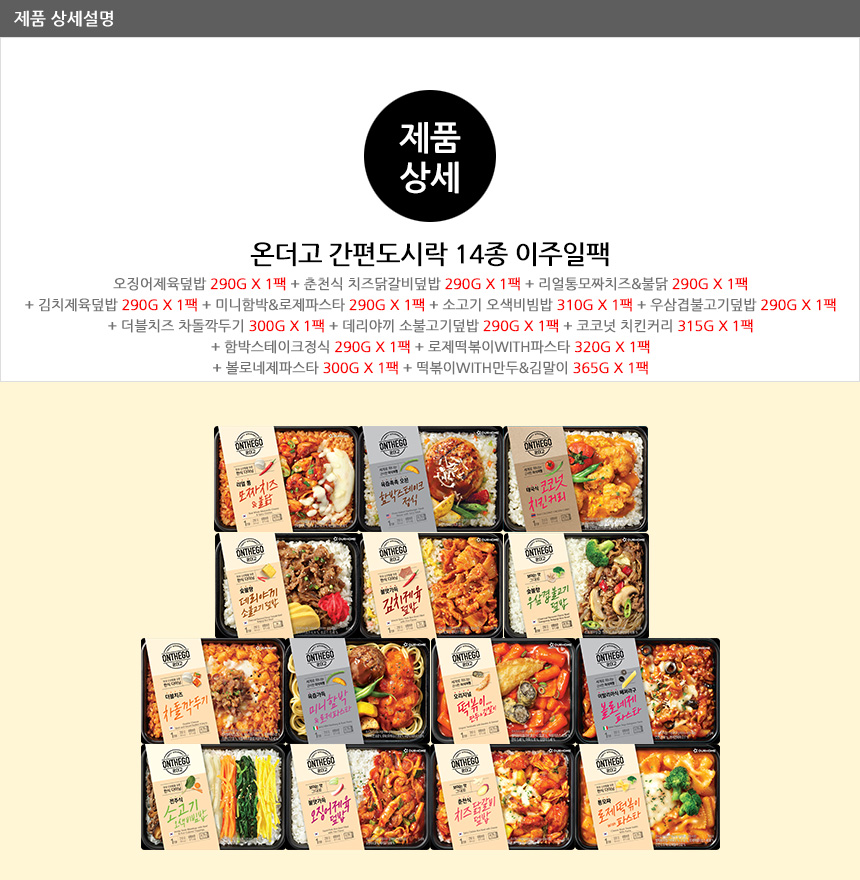 온더고 간편 도시락 14종 이주일팩(오징어제육/치즈닭갈비/우삼겹불고기/차돌깍두기 덮밥 등)