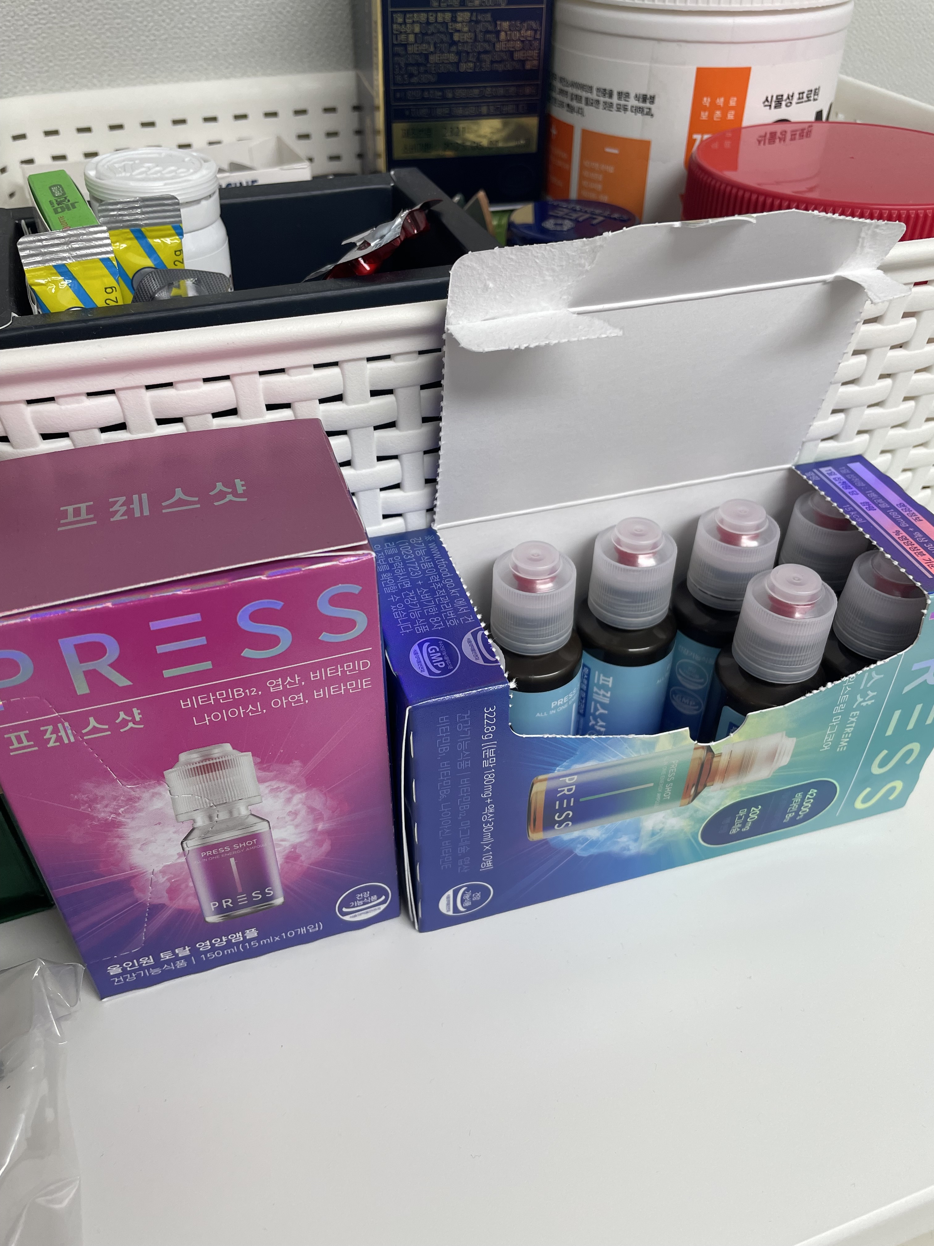 글루콘산마그네슘, 비타민B1염산염, 비타민B6, 비타민E혼합제제분말(dl-α-토코페릴아세테이트, 포도당시럽, 옥테닐호박산나트륨전분, 이산화규소), 니콘틴산아미드, 비타민B12, 엽산, 정제수, 구연산삼나트륨, 향료(포도향), 만니톨, 소브산칼륨(보존료), 향료(망고향), 구연산, 이산화규소, 효소처리스테비아, 수크랄로스(감미료), 스테아린산마그네슘