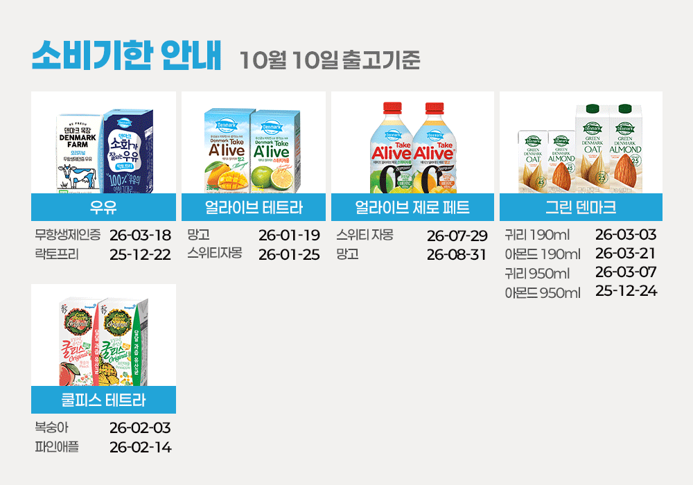 상품 입고일별 소비기한이 상이하므로 필요시 별도 문의 바랍니다.