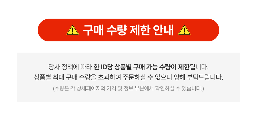대량 구매하셨더라도, 수령/개봉 후 장기간 경과한 제품의 경우, 귀책 여부 확인이 어려워 처리가 불가하니, 꼭 안내된 기한 내에 문의 부탁드립니다.